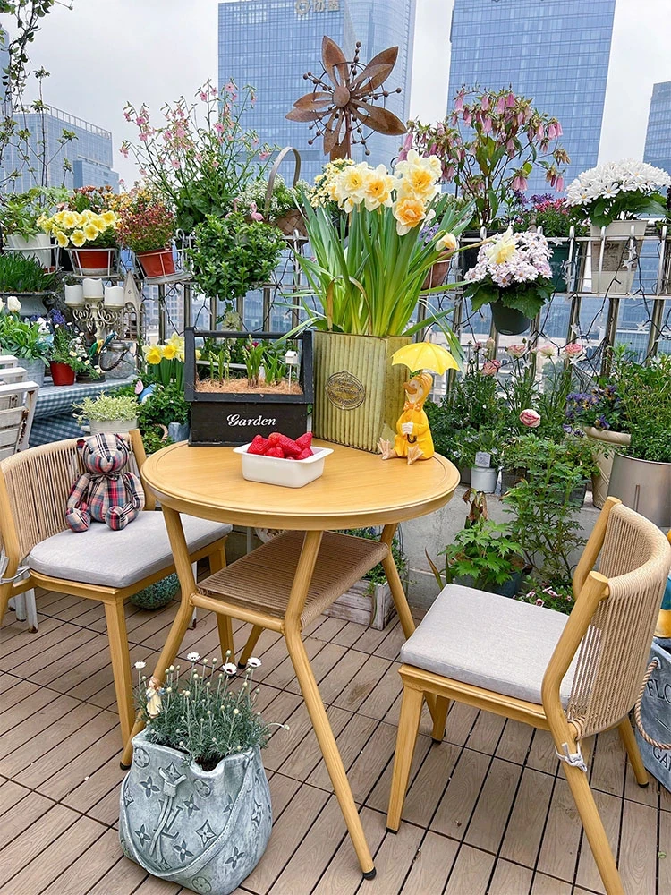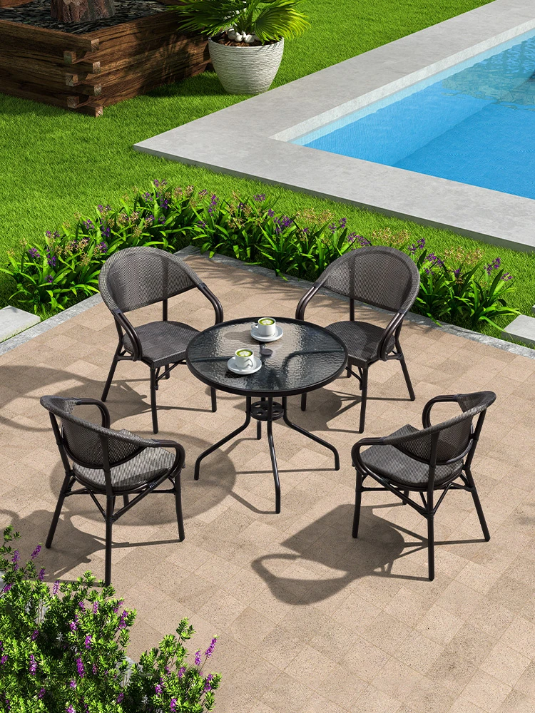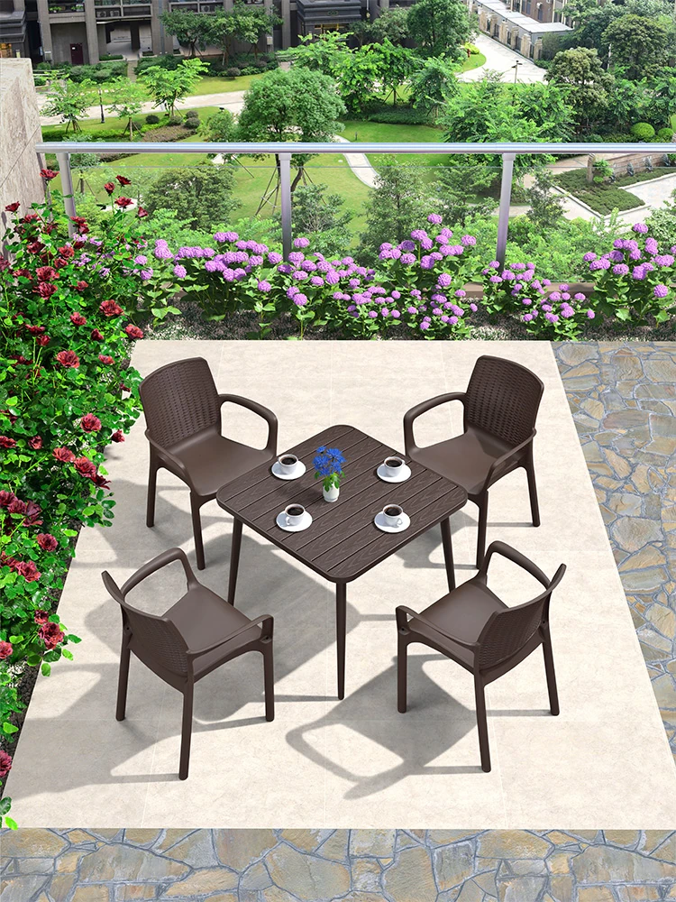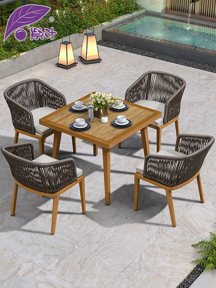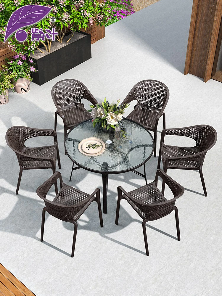 紫葉のアウトドアレジャーテーブル&チェアセット - バルコニーや庭に最適!カフェやティーショップのためのスタイリッシュな屋外ダイニングテーブル&チェア。おしゃれで快適な空間を演出し、楽しいひとときを提供します!