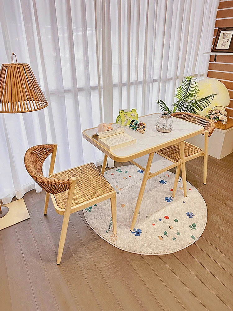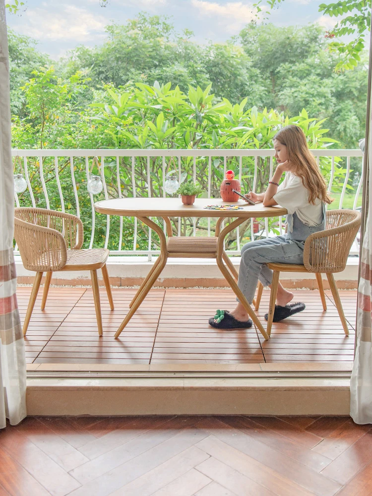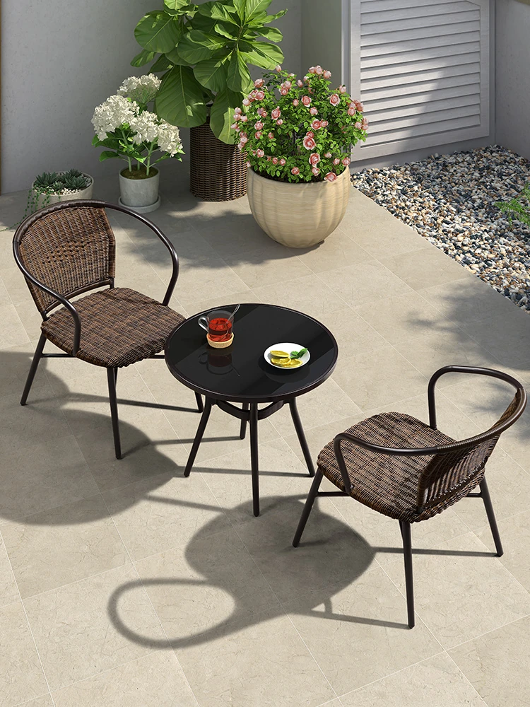紫葉バルコニー用ティーテーブルセット - シンプルでおしゃれな一卓二椅子、人気のリラックススタイル!快適なラタン椅子付き、3点セットで心地よいひとときを提供します。