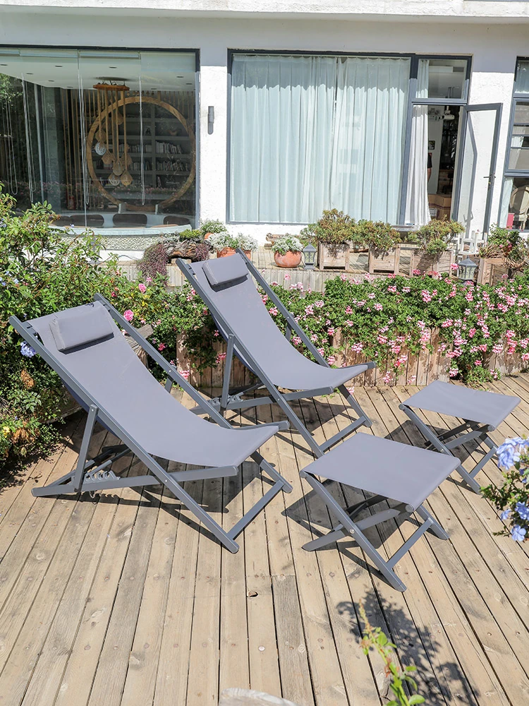 紫色の折りたたみ式リクライニングチェア - バルコニーや家庭用に最適!日光浴にぴったりなアルミ合金製の軽量ポータブルチェア。アウトドアやビーチでも大活躍!リラックスしたひとときをお楽しみください。