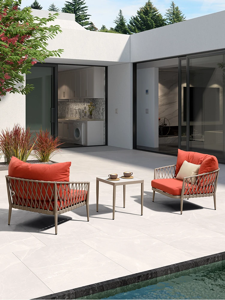 紫色の葉のバルコニー用リラックス家具セット|高級感溢れるシンプルなデザイン|人気のアウトドアテラス用3点セット|ヴィラや庭に最適な小型ソファーで、快適なひとときをお楽しみください!