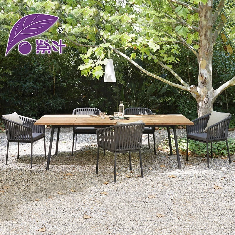 紫色の葉を持つアウトドア用無垢材テーブル&チェアセット - ガーデン・パティオに最適なチーク製リラックス家具、ヴィラ向けのダイニングテーブル&チェア、屋外テラス用。快適なひとときをお楽しみください!
