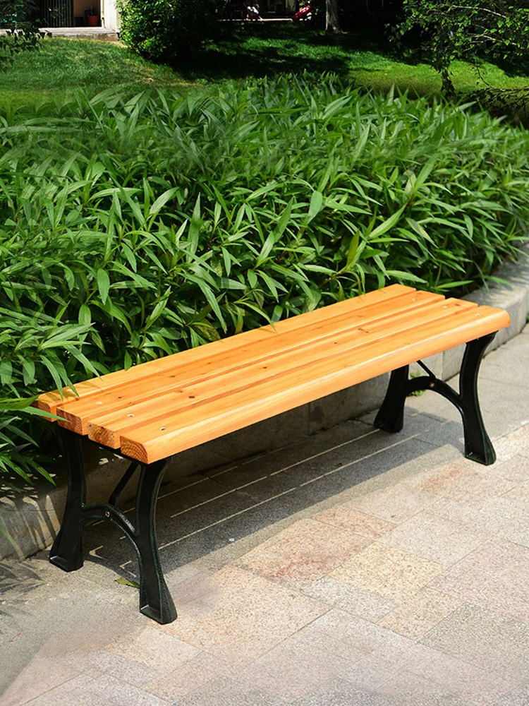 紫葉公園のアウトドアベンチ - 美しい景観を楽しむための長椅子。耐久性の高い山樟木とステンレス製のリラックス背もたれ付き。公園や広場でのくつろぎのひとときをお届けします。
