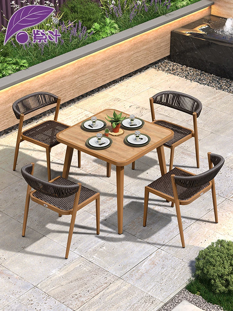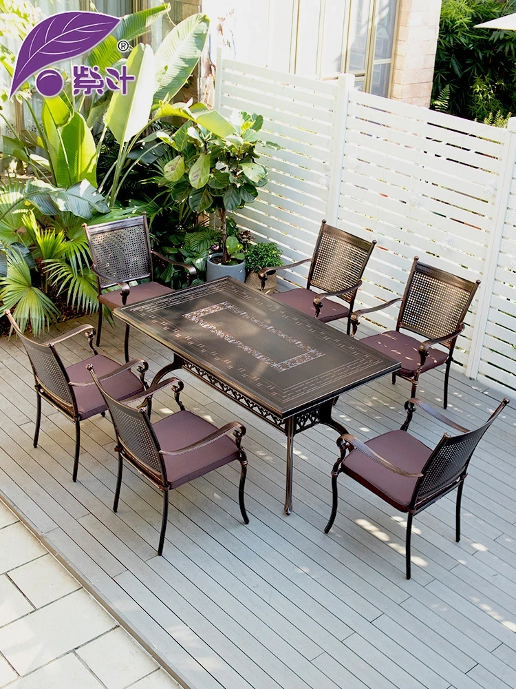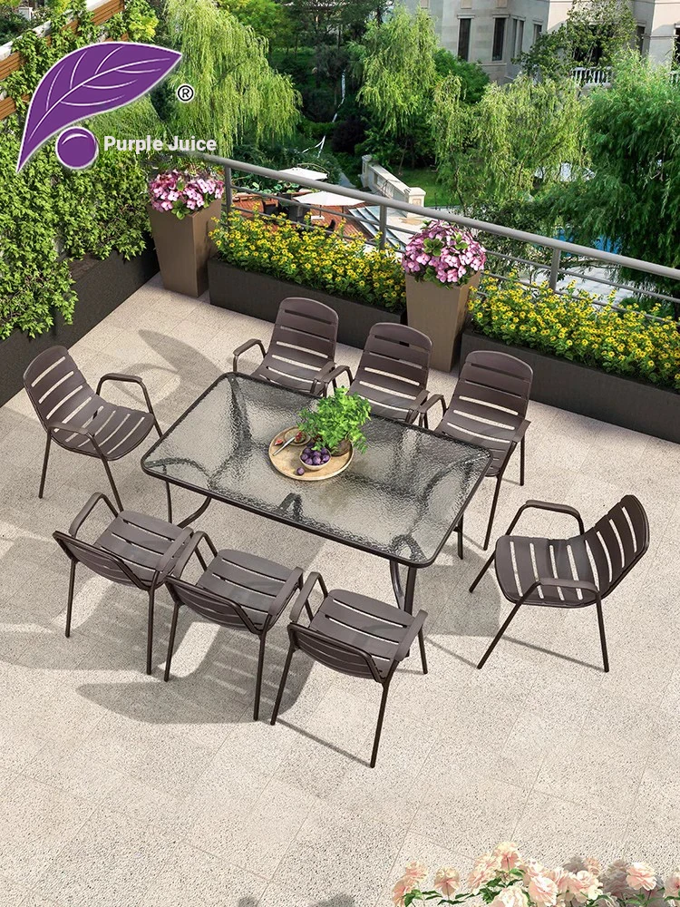 Purple Leaf Outdoor Dining Set - Elegant Aluminum Table and Chair Combo for Villas and Gardens, Ideal for Patios, Courtyards, and Clubs - Stylish Leisure Furniture for Your Outdoor Retreat