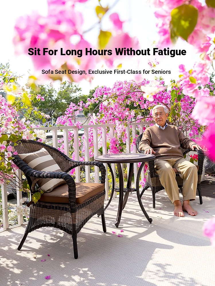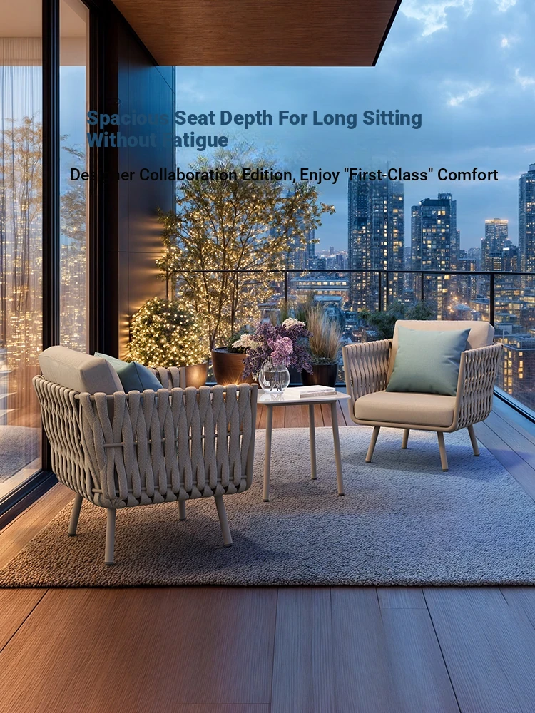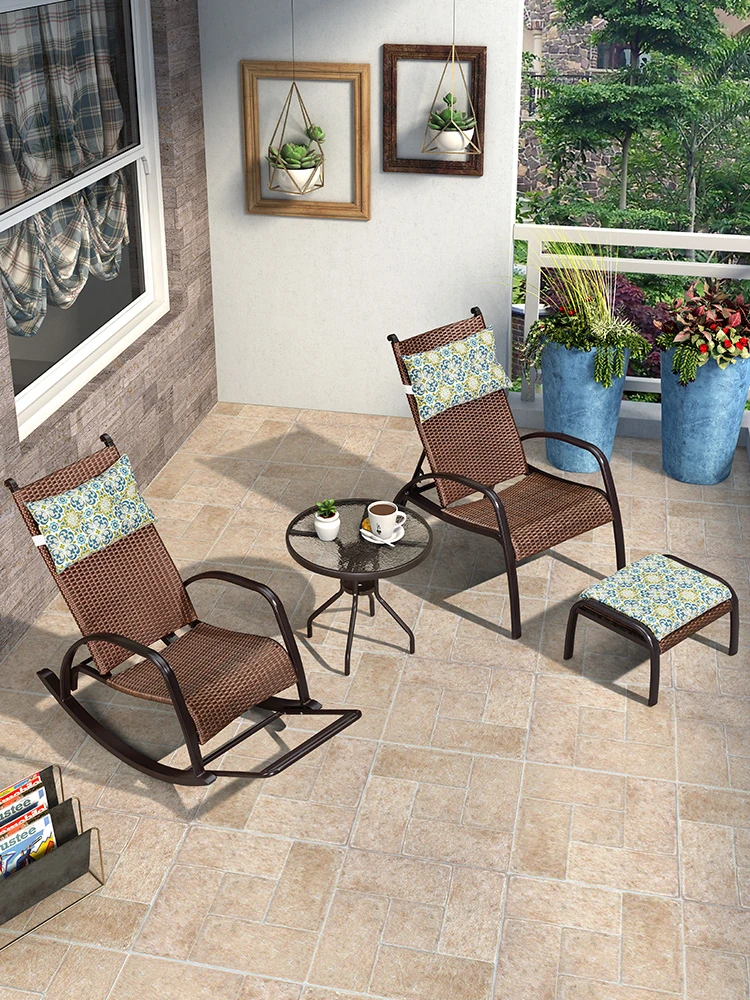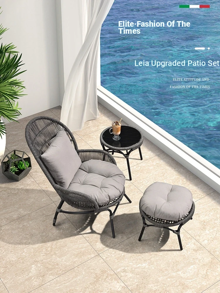 Purple Leaf Balcony Leisure Table and Chair Set – Rattan Single Sofa, Coffee Table, and Chair Trio – Minimalist Nordic Style Tea Table and Chair Combo for Cozy Outdoor Relaxation