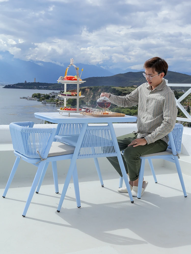 Purple Leaf Nordic Outdoor Leisure Table and Chair Set - Premium Rattan Garden Furniture for Patios and Gazebos, Perfect for Outdoor Gatherings and Relaxation.