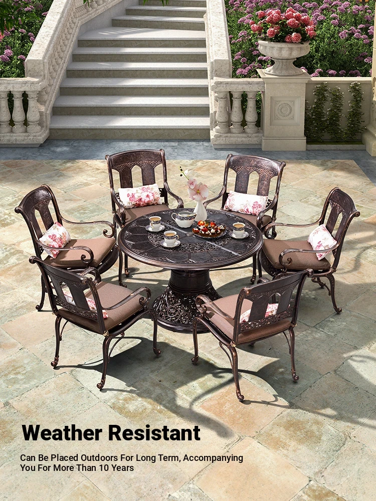 Purple Leaf Cast Aluminum Outdoor Dining Set - Stylish Patio Furniture for Gardens, Villas, and Courtyards - Waterproof and Durable Iron Art Design for Relaxing in Your Backyard