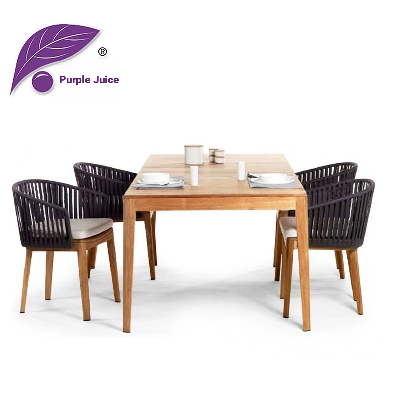 Elegant Purple Leaf Solid Wood Outdoor Dining Set - 5-Piece Teak Furniture for Patio, Garden, and Terrace - Perfect for Relaxing Tea Time or Outdoor Gatherings.