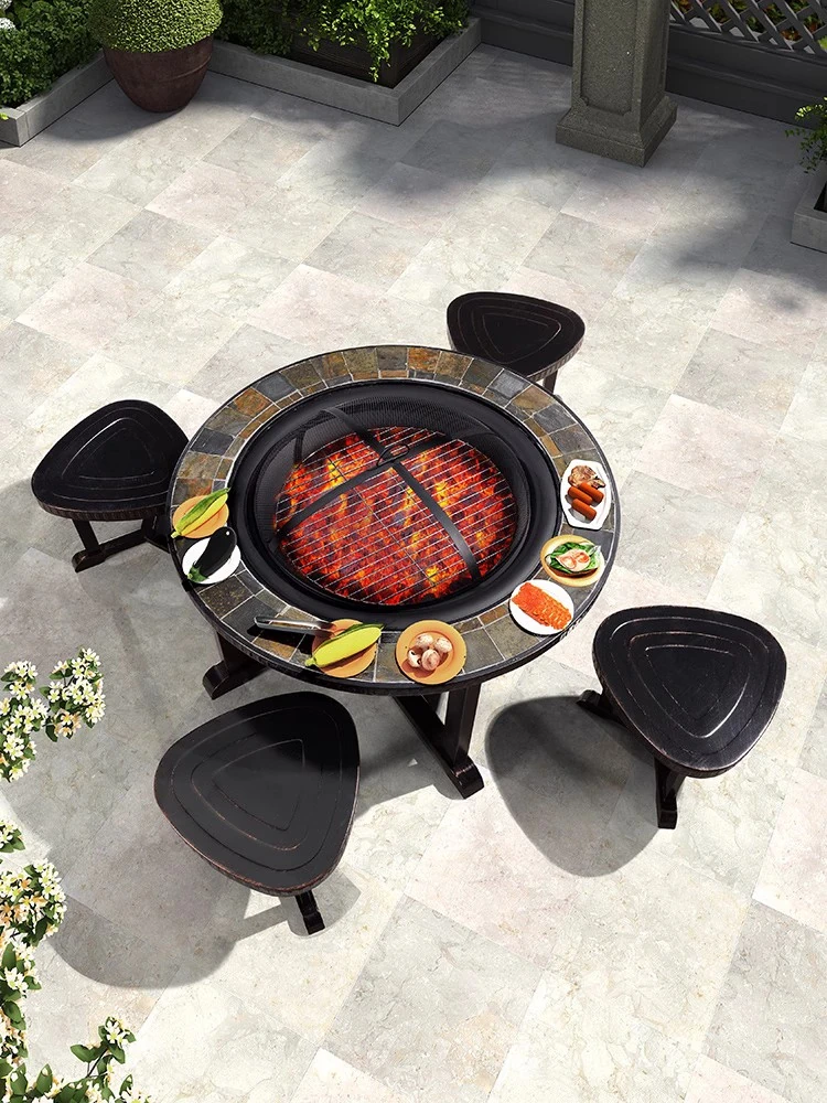 Purple Leaf Outdoor BBQ Dining Set - Cast Aluminum Table and Chairs for Patio, Garden & Terrace - Stylish Iron BBQ Grill for Home Use