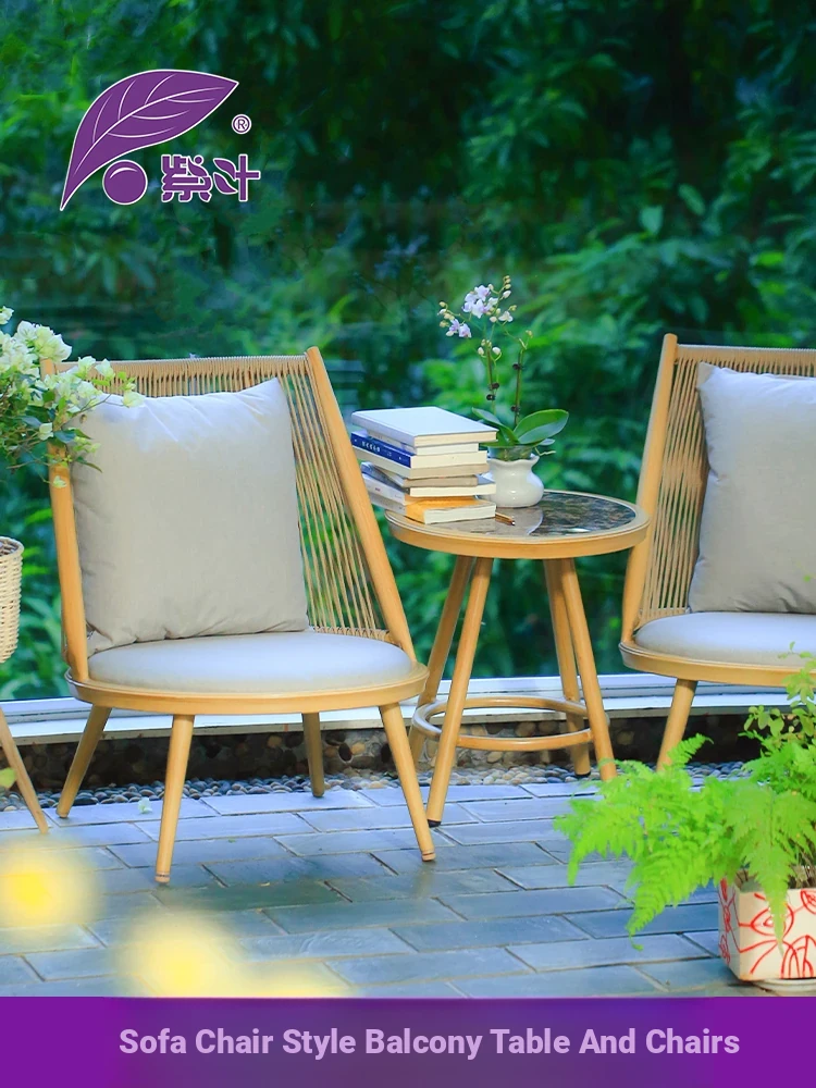 Purple Leaf Balcony Table and Chair Set - Nordic Minimalist Designer Collection for Villas, Featuring Stylish Lounge Chairs, Sofa, and Rattan Reading Chair - Perfect for Relaxation and Enjoying Your Outdoor Space!