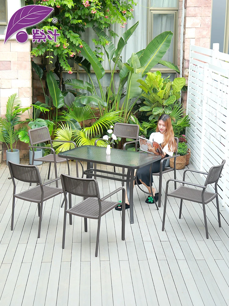 紫葉のアウトドアレジャーテーブル&チェアセット - バルコニーや庭に最適!カフェやティーショップのためのスタイリッシュな屋外ダイニングテーブル&チェア。おしゃれで快適な空間を演出し、楽しいひとときを提供します!