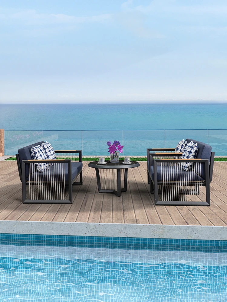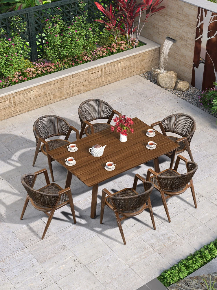 高級感溢れる紫葉別荘ガーデンテーブル&チェアセット - 高品質のユズ材を使用したエレガントなアウトドア家具、テラスやサンルームに最適なスタイリッシュで快適な座席。あなたの庭を贅沢な空間に変えます!