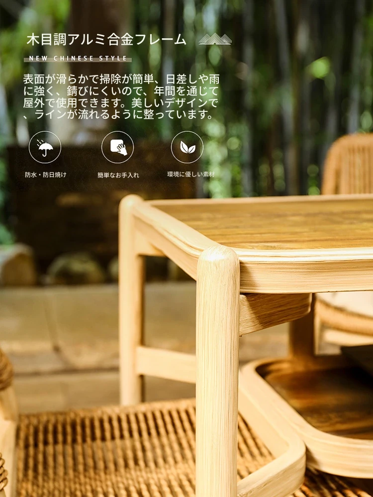 新中式紫葉デザインのアウトドア用茶卓セット - おしゃれなラタン製テーブル&チェアで、庭やバルコニーでのリラックスタイムを楽しもう!心地よいティータイムを演出する、モダンなテラス用家具です。