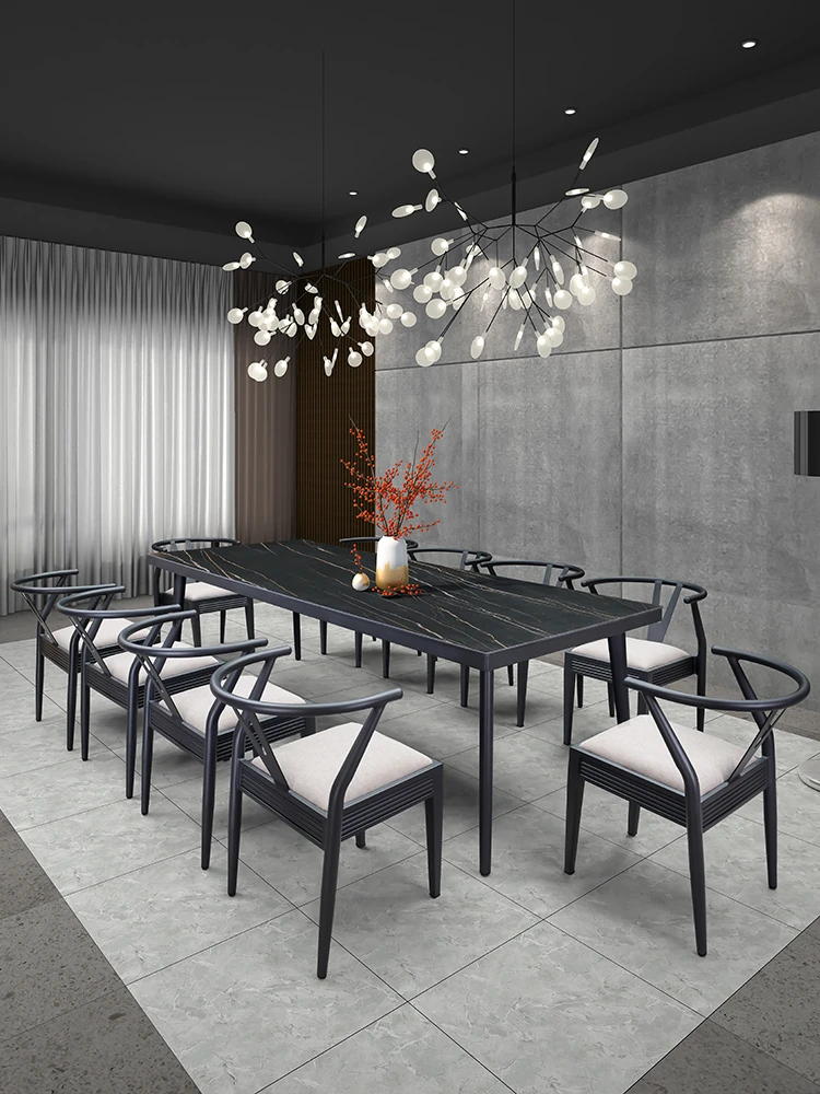 紫色の葉の鋳造アルミニウム製の屋外テーブルと椅子セット - おしゃれな大理石長テーブルとアイアン製の椅子で、庭やバルコニーを魅力的なリビングスペースに変身させます!快適なアウトドアダイニングを楽しむための完璧なコンビネーション。